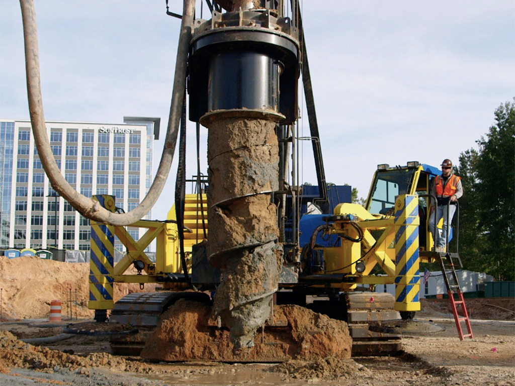 Cast-in-place piles constructed using a continuous auger, minimizing vibration and noise during installation.